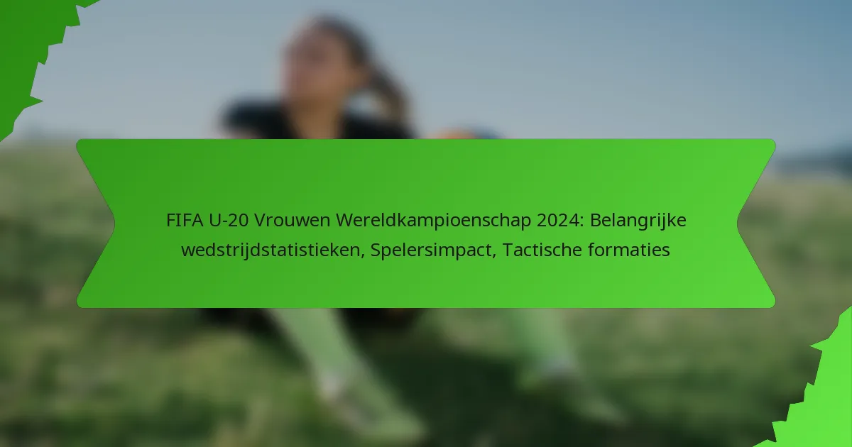 De FIFA U-20 Vrouwen Wereldbeker 2024 benadrukt het belang van wedstrijdstatistieken, die de prestaties van teams en de bijdragen van individuele spelers tonen. Belangrijke statistieken zoals balbezitpercentages en schoten op doel onthullen de effectiviteit van verschillende tactische formaties, terwijl uitblinkers aanzienlijke impact hebben gemaakt door te scoren en assists te geven, wat uiteindelijk de uitkomsten van het toernooi heeft vormgegeven.